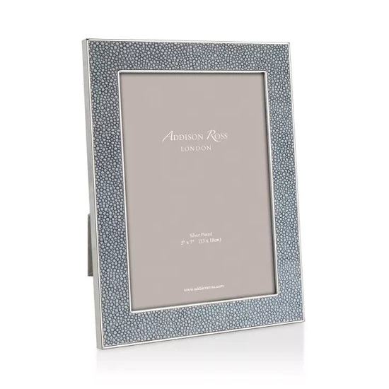 A textured shagreen finish in soft lilac lends a feminine touch to this sleek picture frame by Addison Ross.