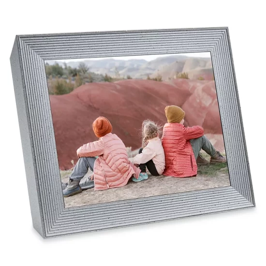 Housing Aura’s highest quality display, the Mason Luxe pairs simple design elements with meticulous craftsmanship for a striking sculptural effect. Its Ultra HD 9.7″ display presents your memories with vibrant colors and brilliant clarity. Simply download the free app, pair your frame and start adding your photos. With unlimited storage, you can easily upload 10,000+ images, never having to choose between your favorites. It’s never been easier to stay connected to loved ones and enjoy all the amazing photos stuck on your phone. Changing the orientation of the frame from portrait to landscape is as easy as turning it on its side. Use the integrated touch bar to scroll through your images or customize the playback settings using the Aura app.