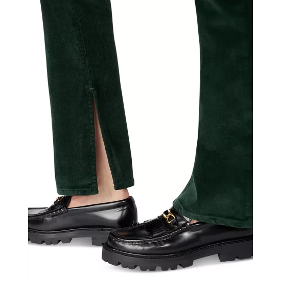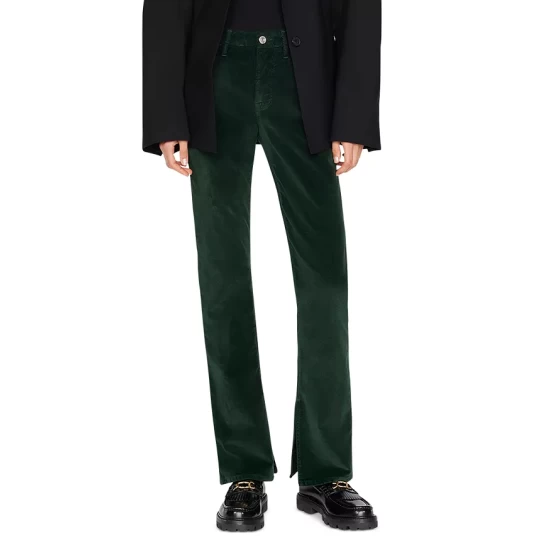 - Bootcut silhouette, slit hems