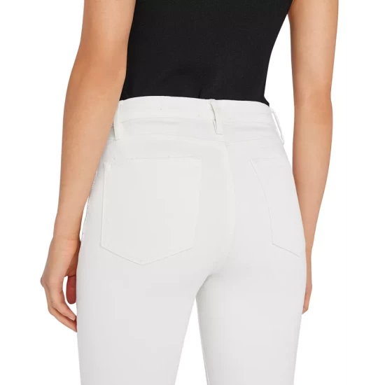- Zip fly with button closure, four-pocket silhouette