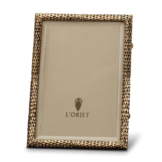 Emulating centuries of fine jewelry design and technique, every L’OBJET frame is meticulously handcrafted with luxurious, opulent details such as 24K gold plating, beveled glass, satin lining and Italian leather backs.
