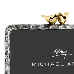 - Textured leather and a recycled aluminum border give this handcrafted frame a chic, fresh look.