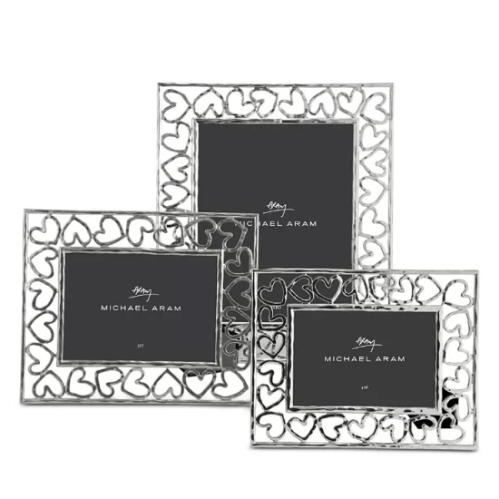 Michael Aram dancing heart photo frames in tarnish resistant silverplate. Ideal for someone you love.