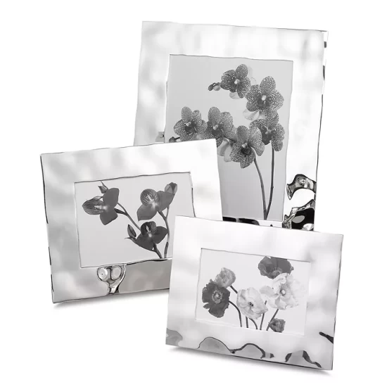 Michael Aram finds inspiration from nature for many of his handcrafted metalware pieces. The Reflective Frame is in tarnish-resistant silverplate.