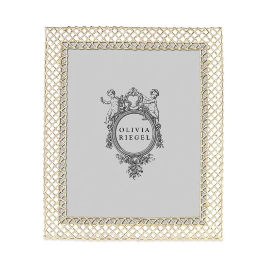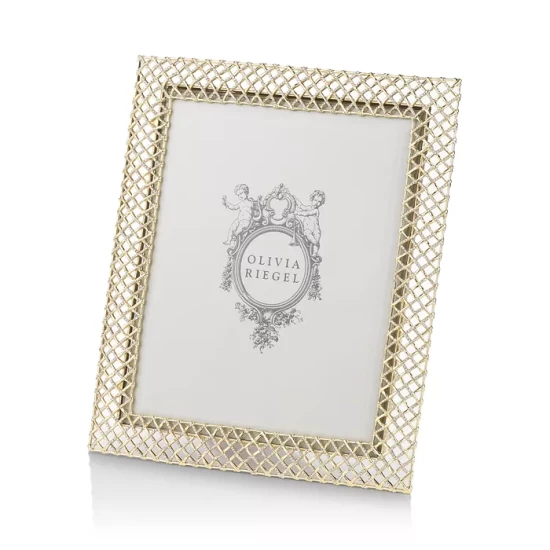 Lending sophistication to any décor scheme, Olivia Riegel’s Tristan Frame is characterized by hundreds of sparkling, hand-cut Austrian crystals encrusted into an eye-catching latticework frame.