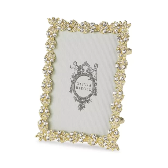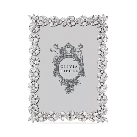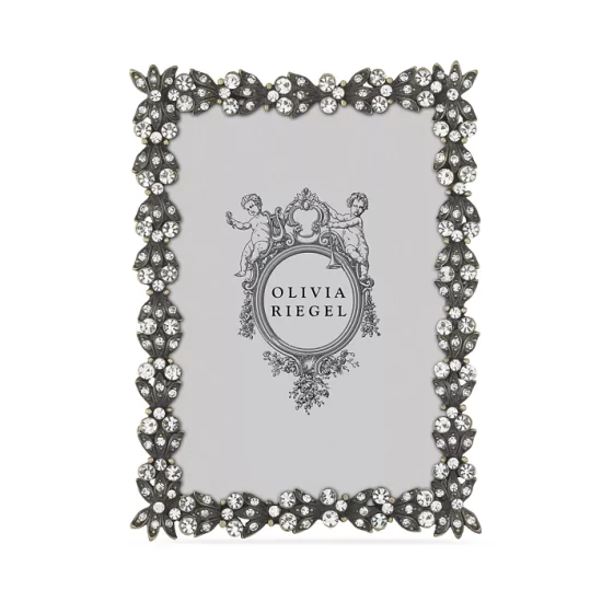 - The Olivia Riegel Victoria Frame in pewter, is encrusted with hand-set clear European crystals