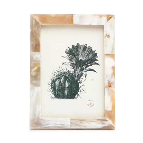- Pigeon & Poodle’s Essen frames are made of African horn panels in hues that range from rich chocolate to natural cream.
