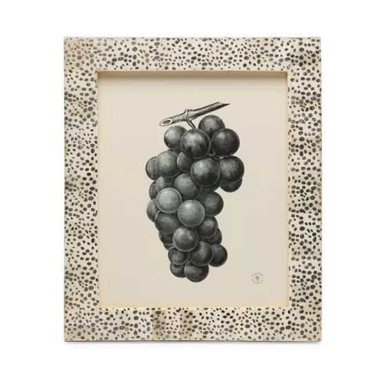 - A blend of whimsy and opulence, this frame collection features gleaming gold- or silver-tone spots on bone
